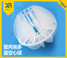 聚丙烯多面空心球是由二個半球合成一個球形,每個半球由若干個半扇形葉片組成,由兩個半球的扇形葉片又相互錯開。這種填料的優(yōu)點是比表面積較大,因此被較多地用于電廠水處理脫CO2設(shè)備中。